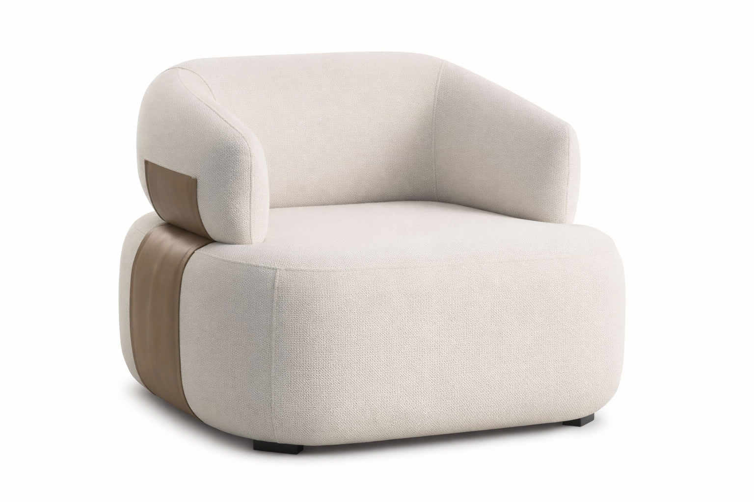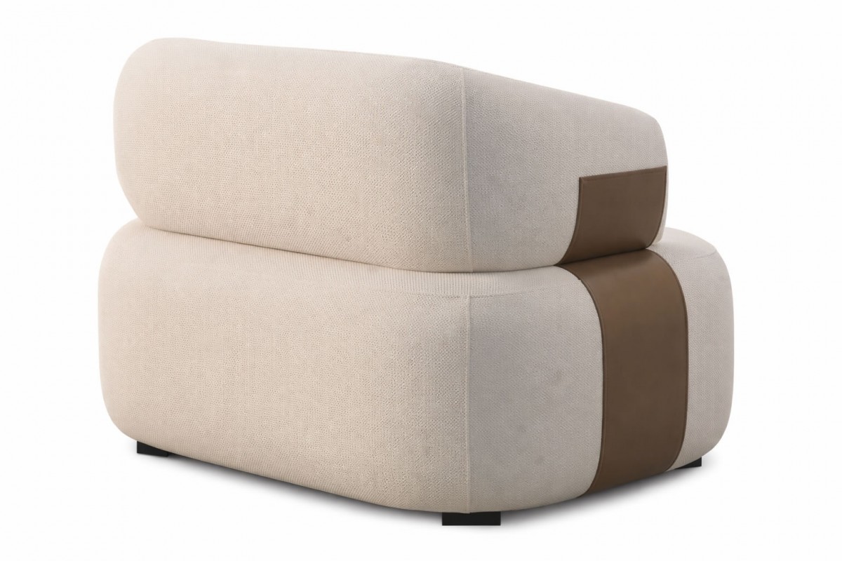 - Detalhe lateral pode ser feito no mesmo tecido da poltrona ou em couríssimo